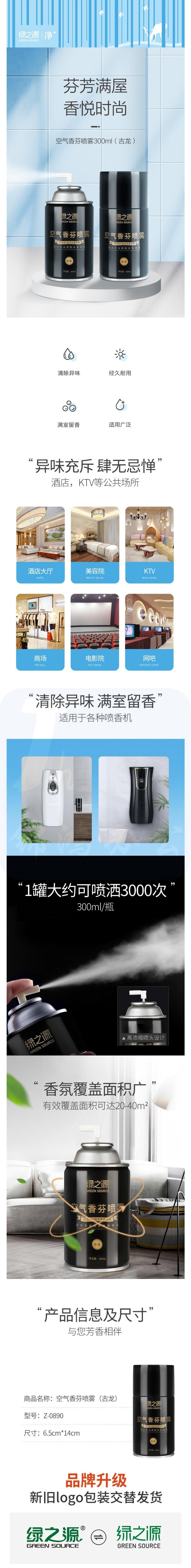 绿之源 空气香芬喷雾300ml(古龙)自动喷香机芳香剂 家用清香剂香水空气清新剂