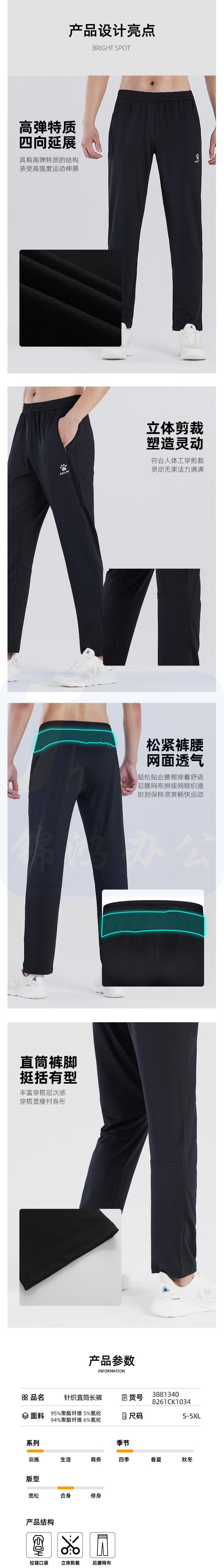 卡尔美 春秋运动裤男跑步训练长裤舒适透气针织直筒裤子3881340