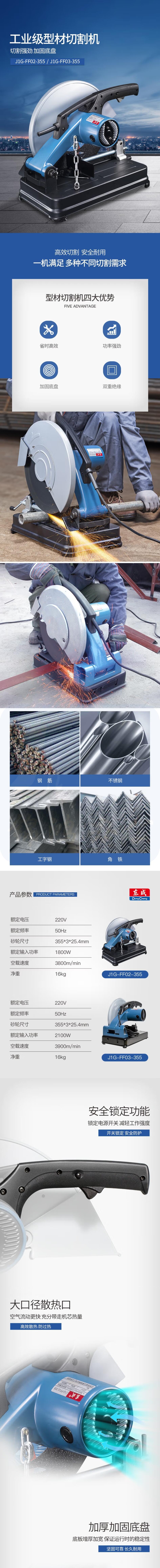 东成 J1G-FF02-355 型材切割机1800W金属钢材切割机220V