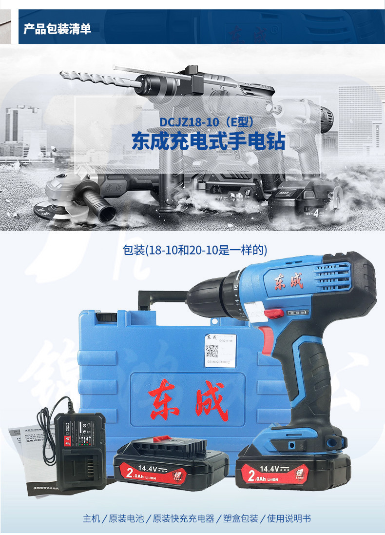 东成 DCJZ18-10E 双电版 锂电钻充电式起子机手电钻多功能套装16V电动螺丝刀