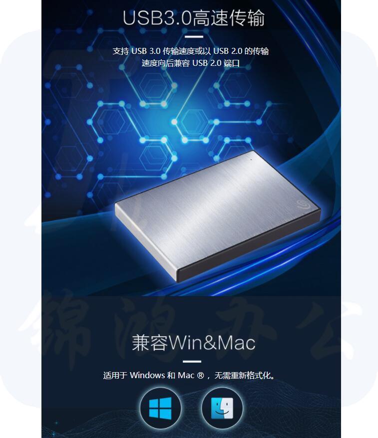 希捷 2TB USB3.0 移动硬盘 睿品新版铭 时尚金属拉丝面板