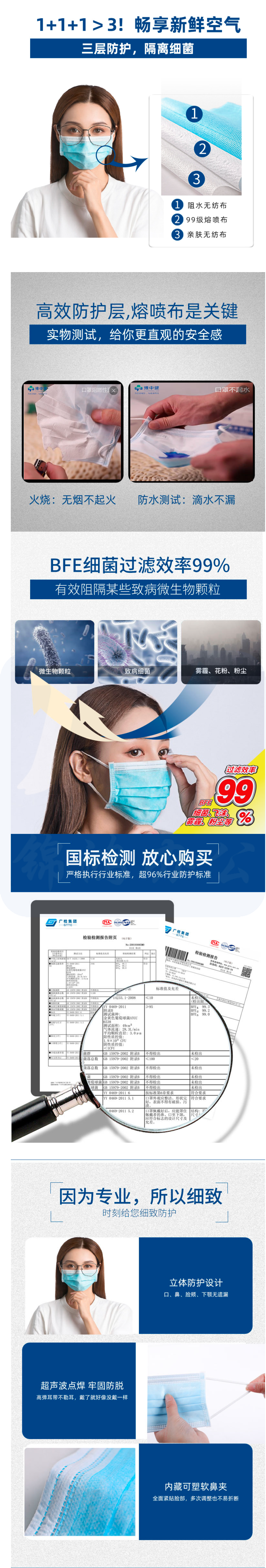 一次性口罩 独立包装 防病毒灭菌口罩50只/盒