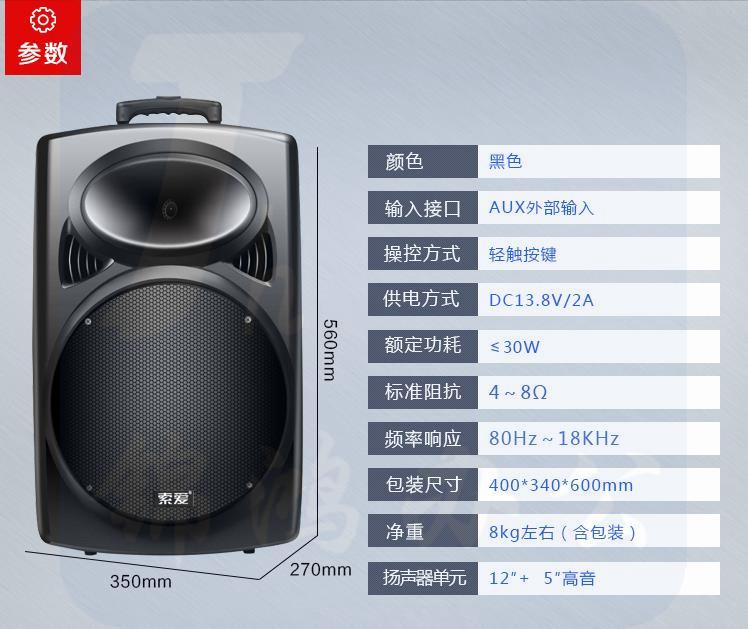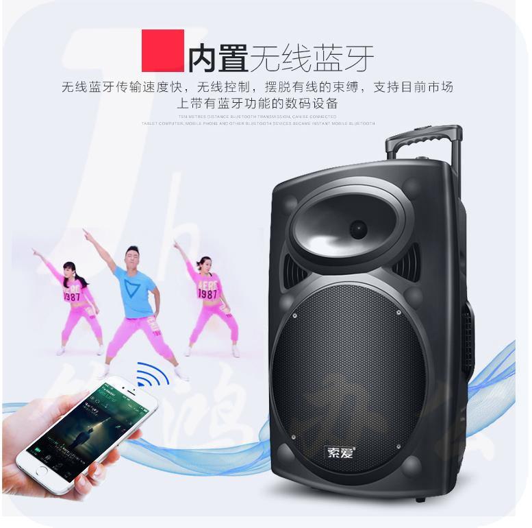 索爱 SA-T20新版 12英寸广场舞音响 蓝牙拉杆音箱户外便携式音响 大功率低音炮带无线麦克风扩音器