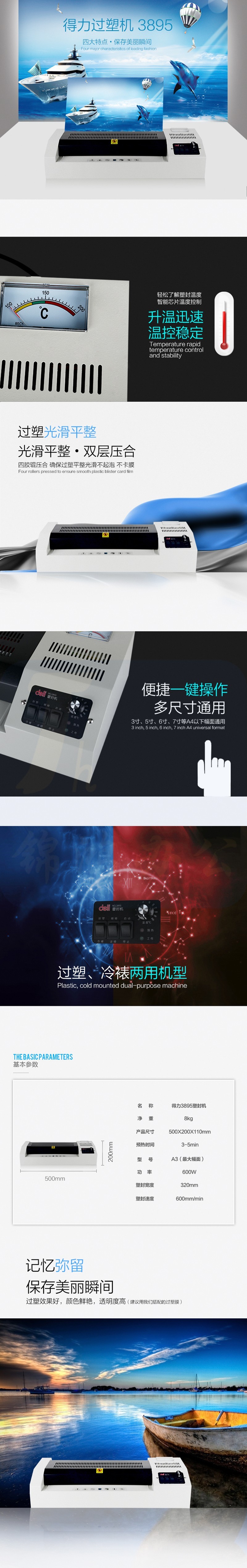 得力3895 A3/A4照片塑封机塑封机 功率600瓦 塑封宽度320mm