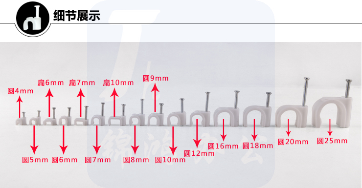天坛 8mm扁型 钢钉线卡 塑料线卡100个/盒