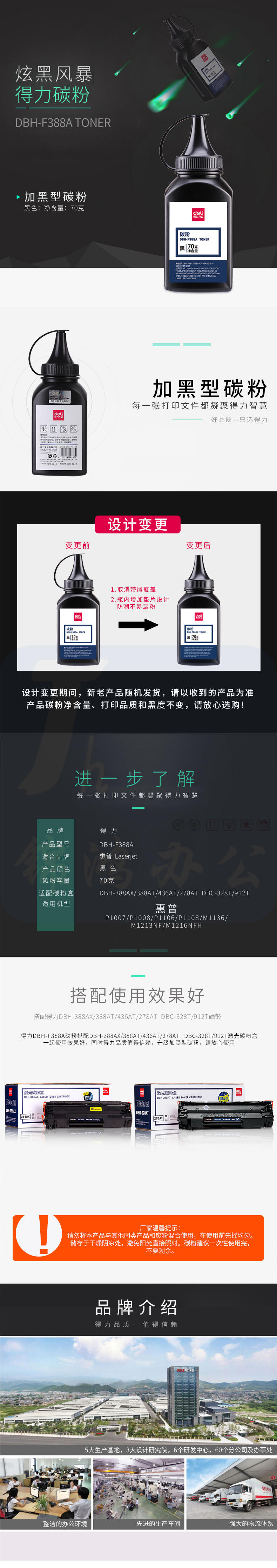 得力DBH-F388A碳粉/墨粉(适用惠普HP P1007/P1008/P1106/P1108/M1136/M1213nf/M1216nfh)