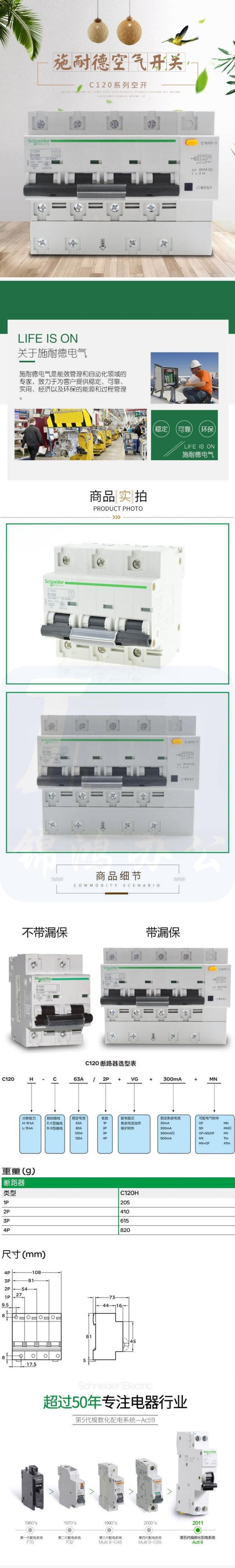 施耐德 C120H漏电断路器 4P 125A 带漏电保护空开 货号:JC