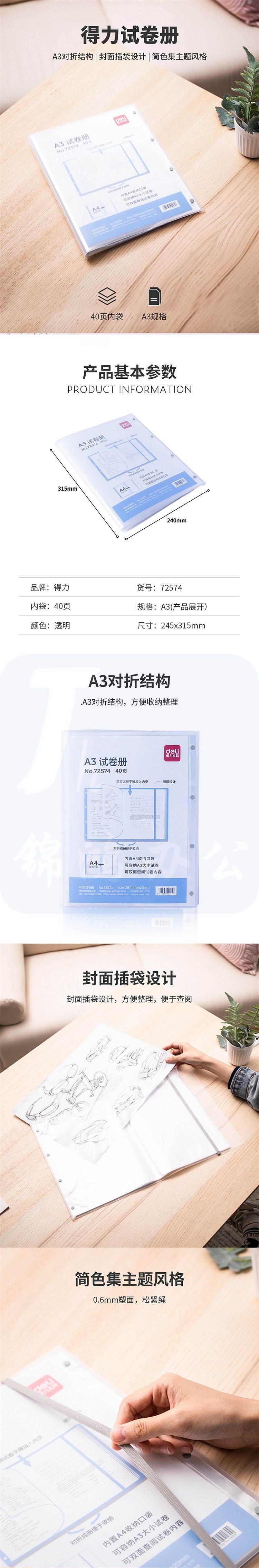 得力72574 40页A3资料册试卷册(单位:个)透明