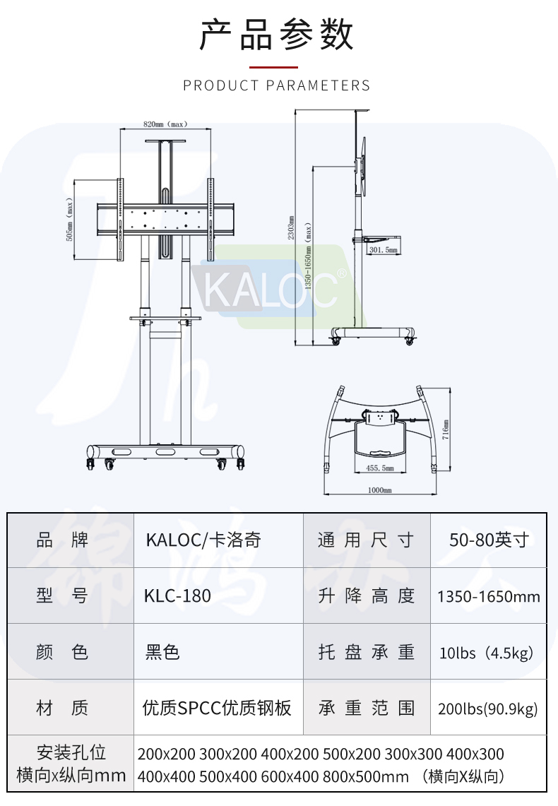 KALOC卡洛奇电视机落地支架 KLC-180(50-80英寸)