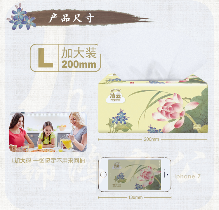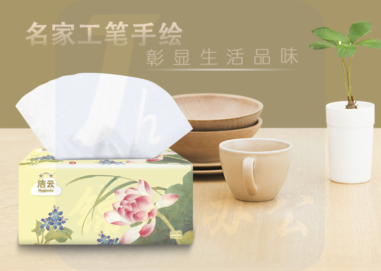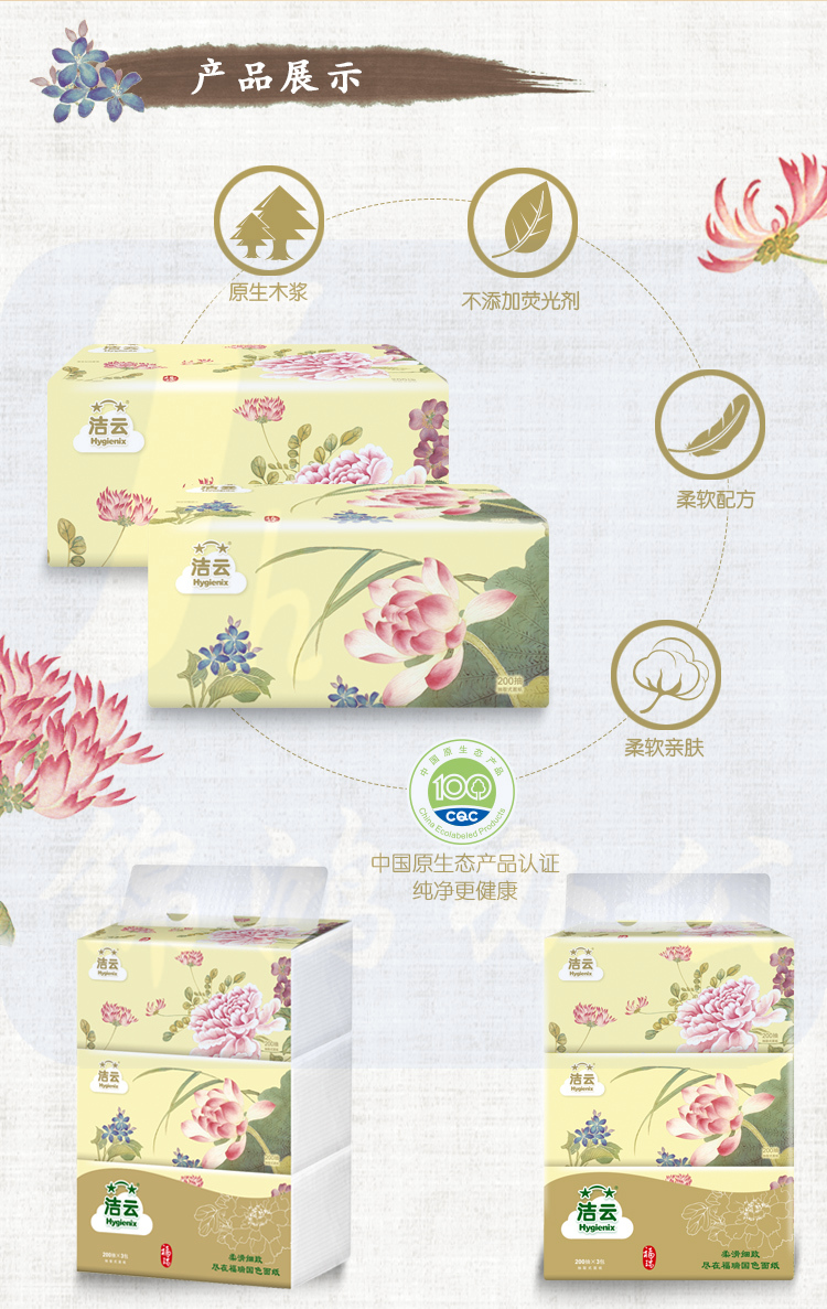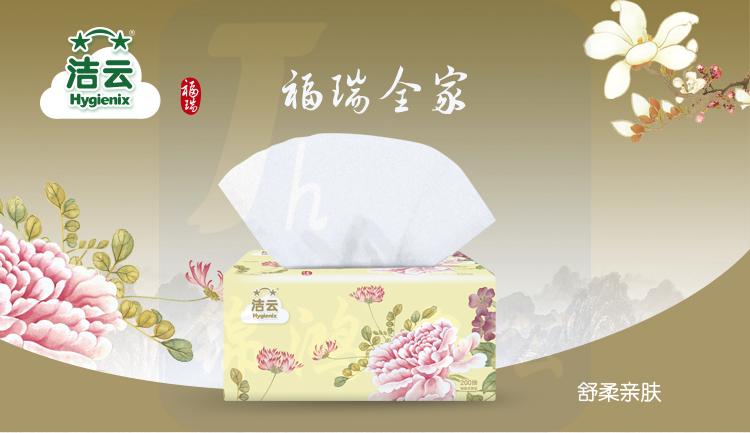 洁云抽纸 福瑞国色200抽 双层面巾纸3包/提 16提/箱