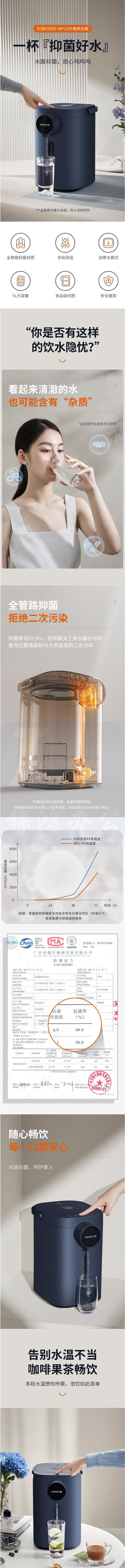 九阳 K50ED-WP2185 电热水瓶热水壶八段保温304不锈钢 5升