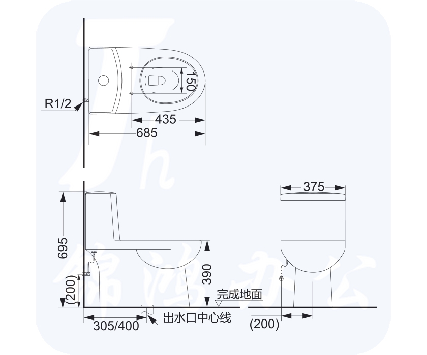 HDC6196A 喷射虹吸式连体坐便器 685×375×695mm 4/6 升双档节水型 UF 静音缓降盖板 坑距 305mm