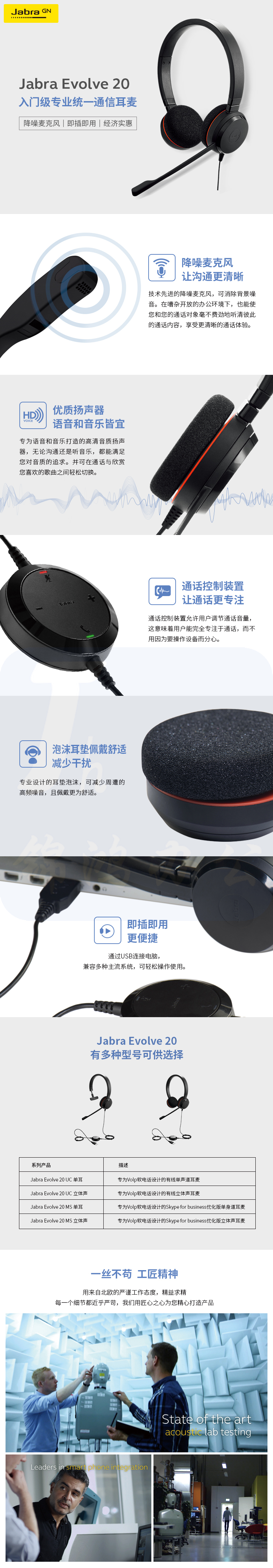 捷波朗 双耳话务耳机头戴式耳机客服耳机呼叫中心耳麦Evolve 20 UC USB被动降噪可连电脑