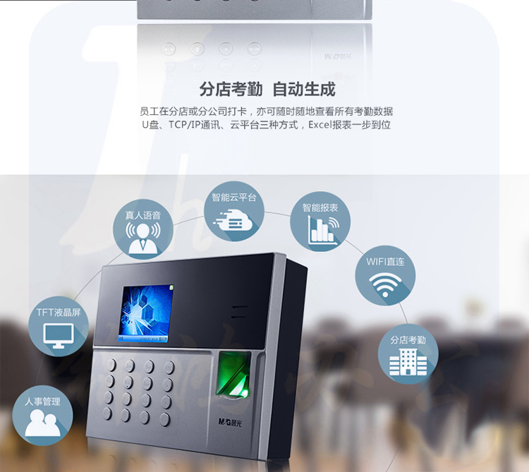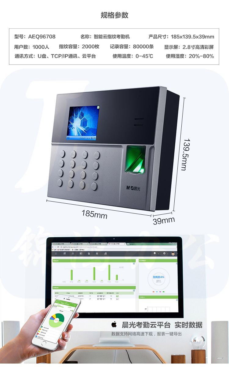 晨光(M&G)智能云指纹考勤机 指纹手指签到 上班员工指纹器 考勤打卡机AEQ96708