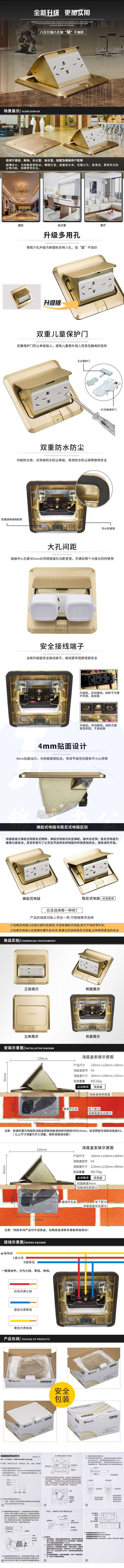 GD1Z332 地面插座全铜防水阻尼 弹出式插座 八孔家用隐藏式地扦铜地插