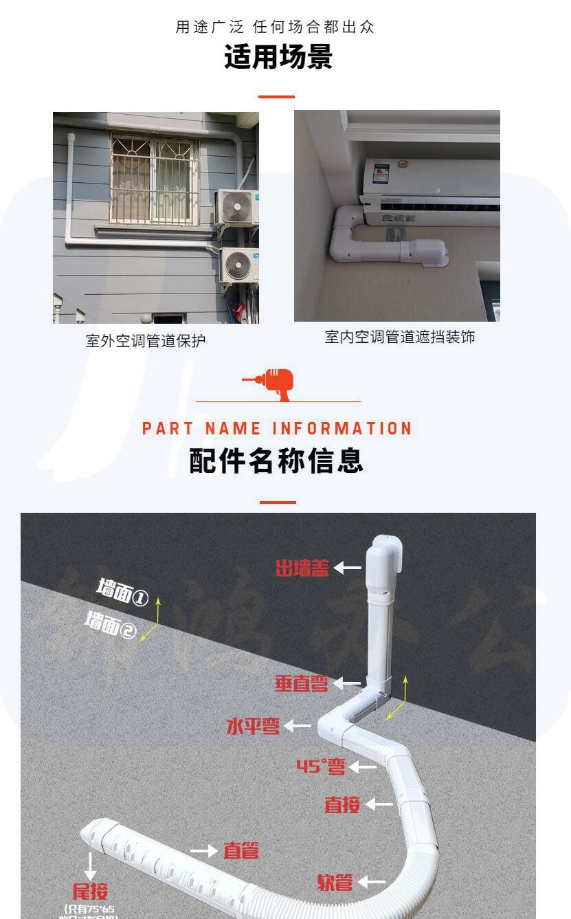 PVC空调装饰管 空调装饰遮挡套管 75*65mm 60cm/根 货号:JC