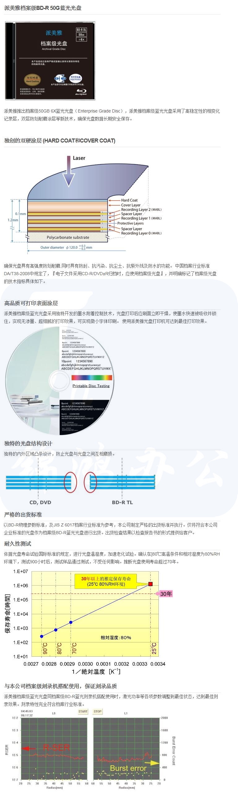 派美雅 档案级 BD-R 50G 蓝光光盘 货号:WY