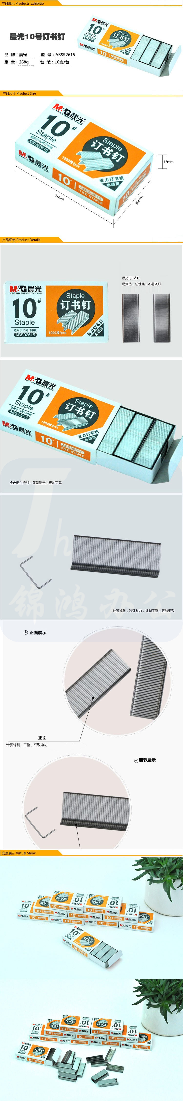 晨光 10#订书钉 易穿透订书针 办公用品 1000枚/盒 ABS92615