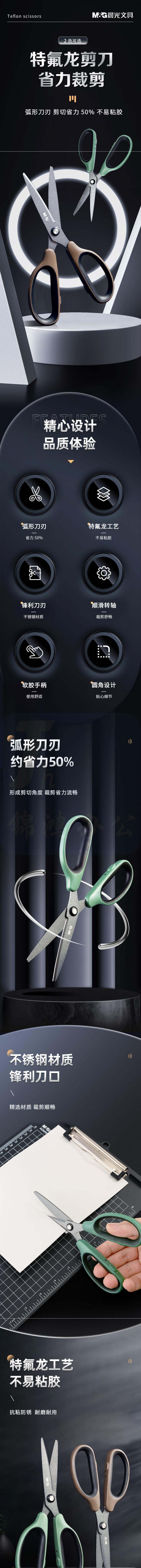 晨光175mm特氟龙省力剪刀 软胶手柄 圆角刀刃 防锈防粘 棕色ASS913R7H