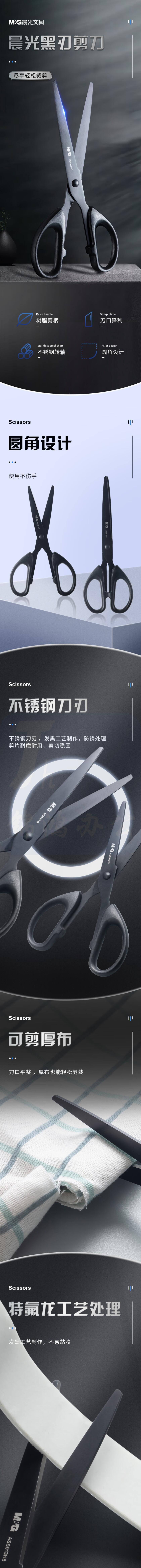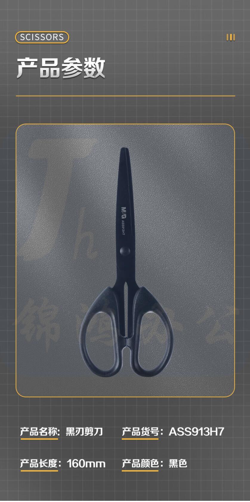 晨光160mm耐磨黑刃剪刀 不锈钢刀刃不易粘胶 中号ASS913H7