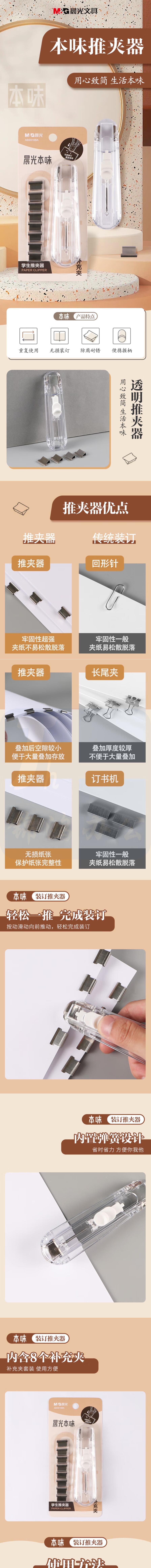 晨光 推夹器套装(推夹器+8枚补充夹) 可夹纸张数40张 ABS916BA 1套