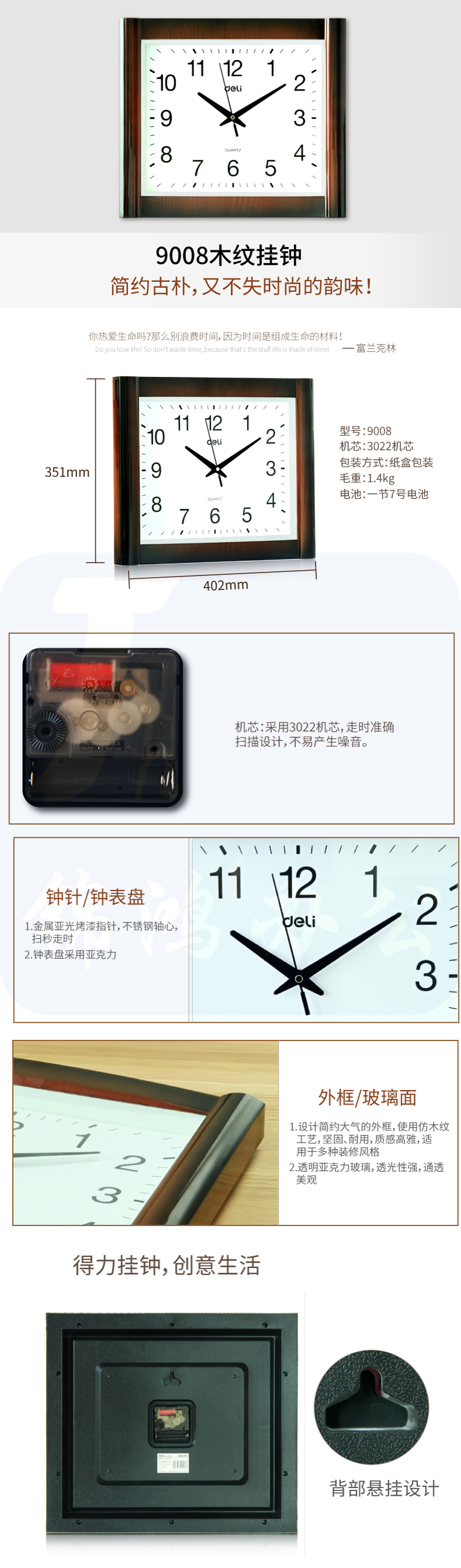 得力9008挂钟电子时钟挂钟客厅钟表(土棕)(只)40*35cm