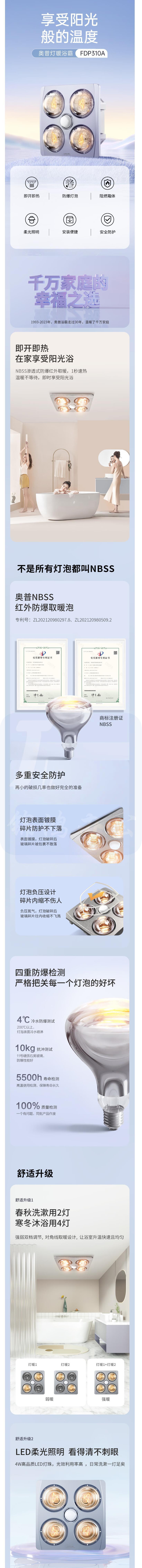 奥普 多功能浴室卫生间灯暖310A浴霸 货号:JC