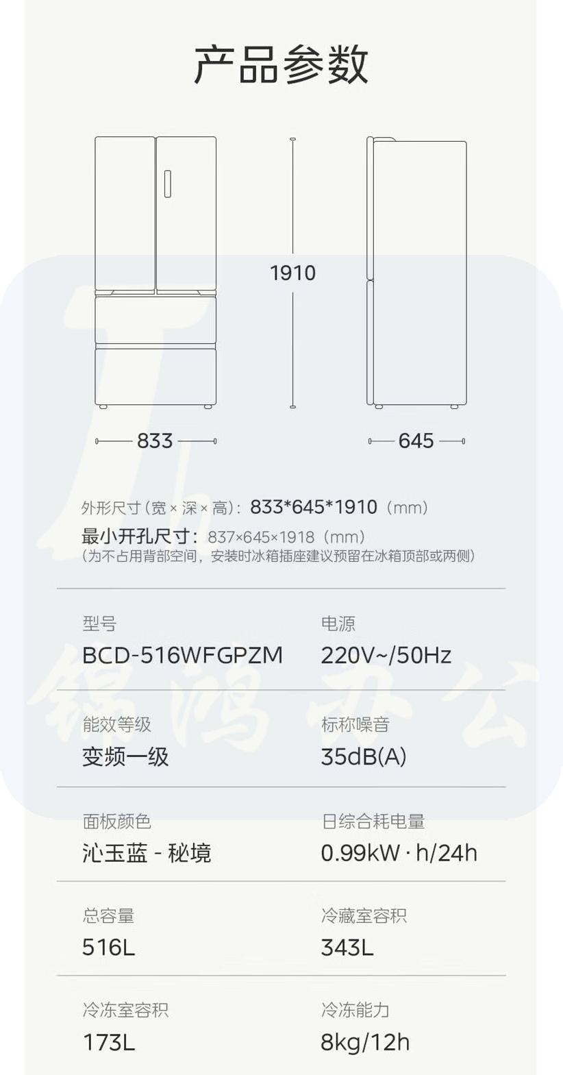 美的 516升冰箱 BCD-516WFGPZM沁玉蓝