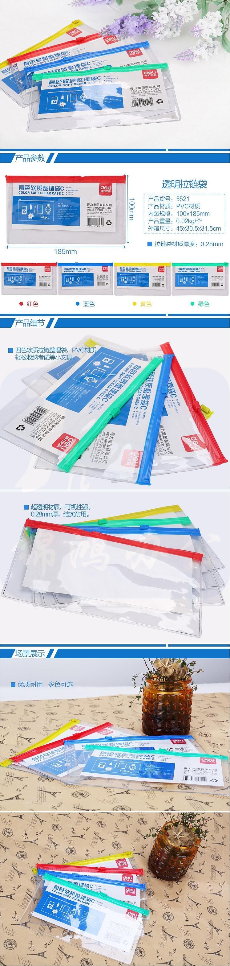 得力5521拉链袋 12只装文件袋100*185mm (混)