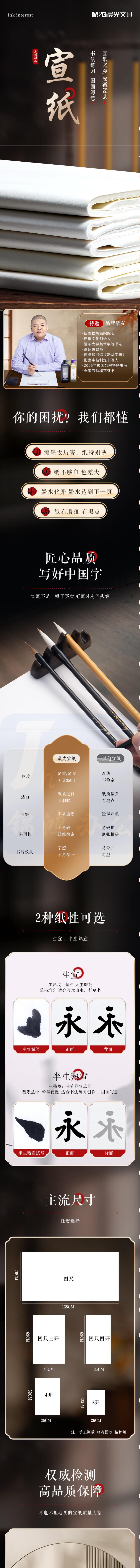 晨光 8开宣纸50张 书法专用纸 25.5*36cm练习纸 半生熟APY907X0