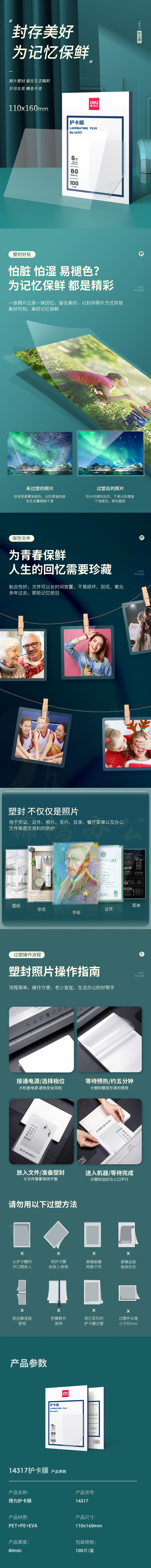 得力 6寸护卡膜 文件照片塑封膜过塑膜110*160mm-100张14317