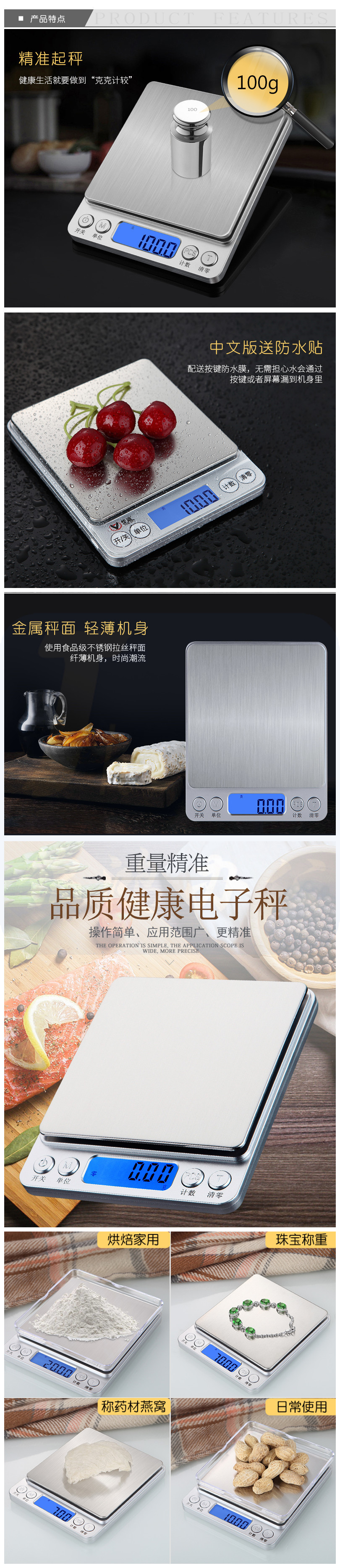 烘焙厨房秤小电子称重食物天平克称 1KG称
