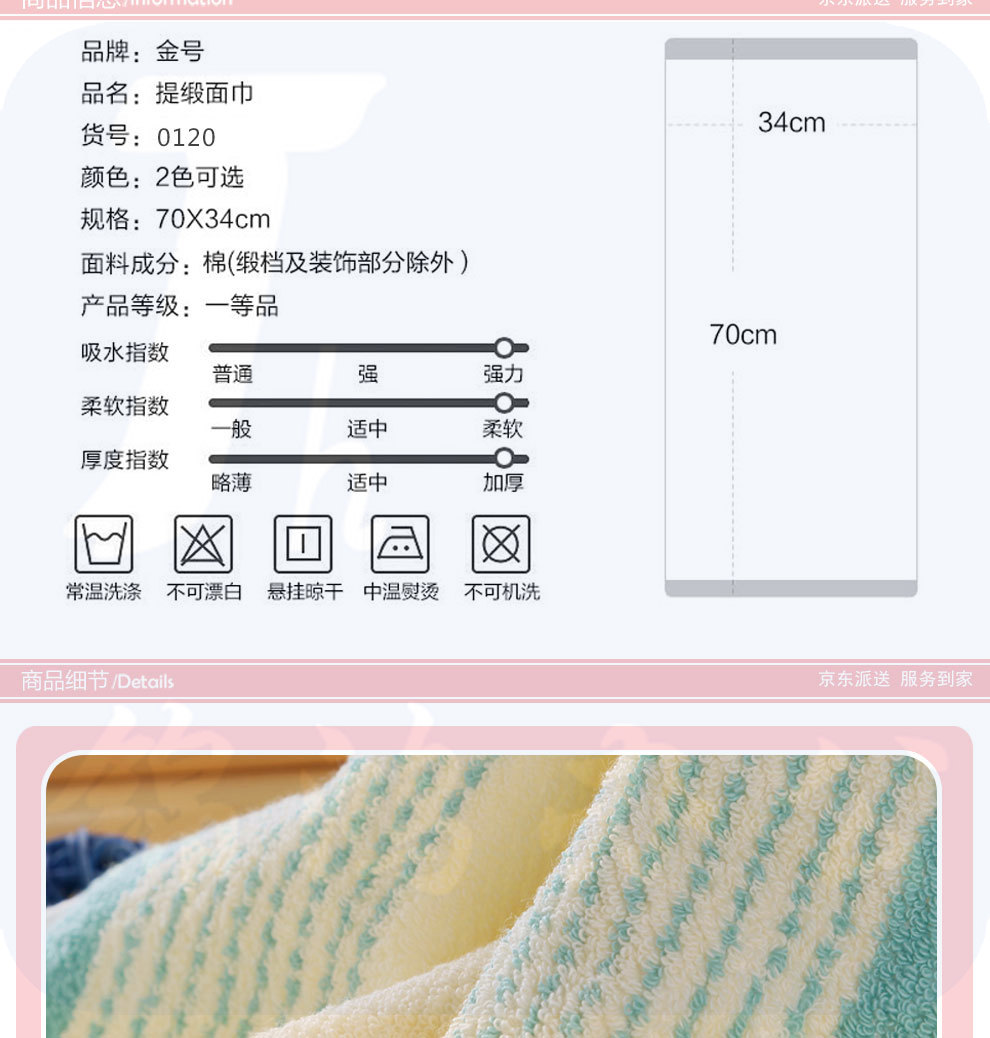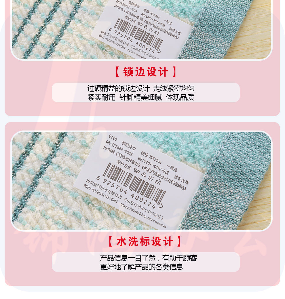 金号毛巾76*33cm 纯棉洗脸面巾 0120