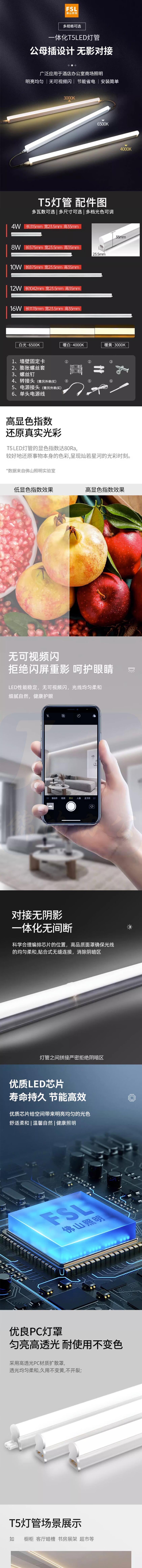 佛山照明 led灯管T5一体化支架无影对接 0.3米灯管4W 3000K黄光