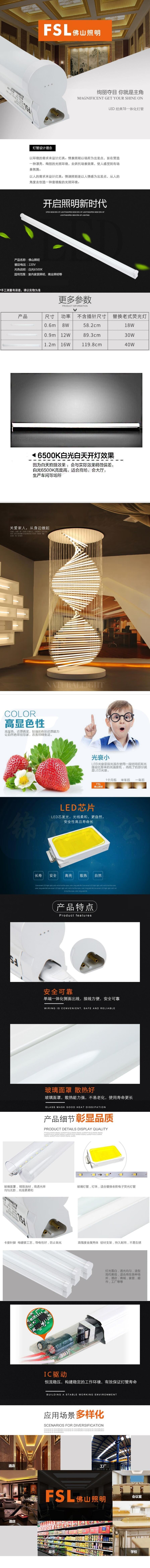 佛山照明 经典T8外置一体化支架0.6米-8W-6500K(白光)T8灯管支架一体化套装