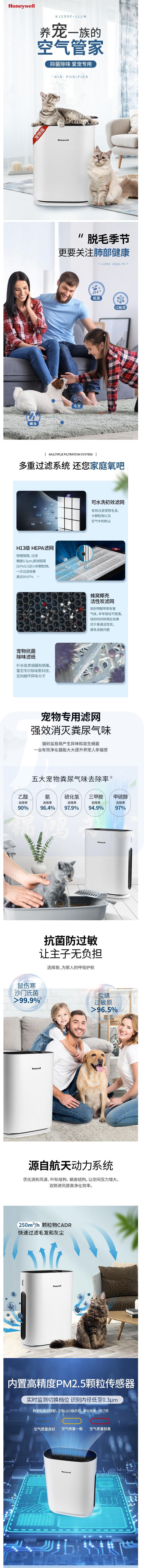 霍尼韦尔 空气净化器 吸附宠物毛发猫咪除异味 KJ250F-J11W