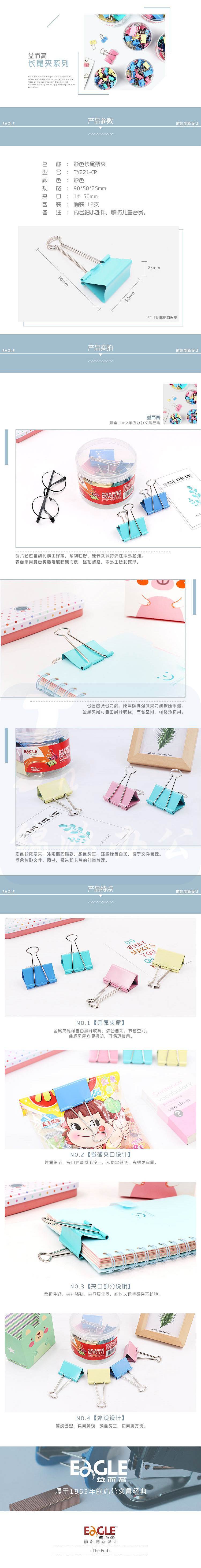 益而高TY221-CP长尾夹彩色51mm/12支/筒(筒)
