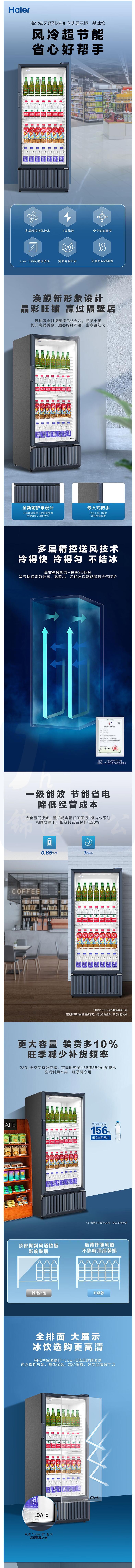 海尔 立式展示柜 冷藏柜饮料柜 280升大容量 风冷自动化霜中空玻璃门 SC-309J