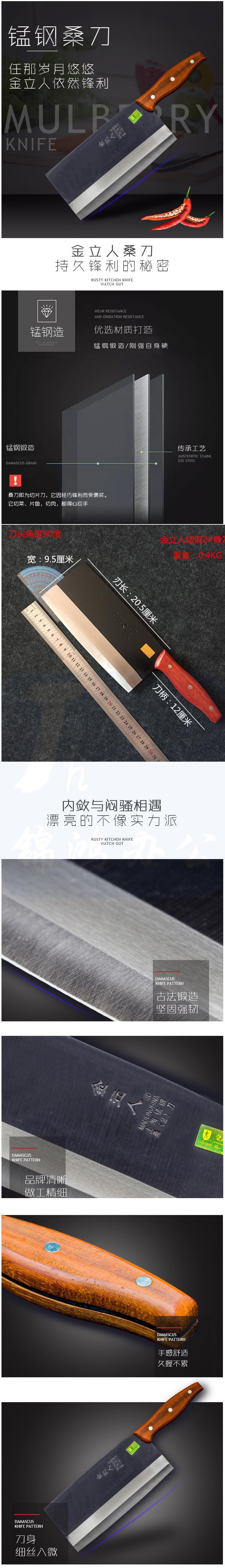 金立人 菜刀 桑刀 木柄 不锈钢桑刀 单刀不锈钢厨师专用切片刀