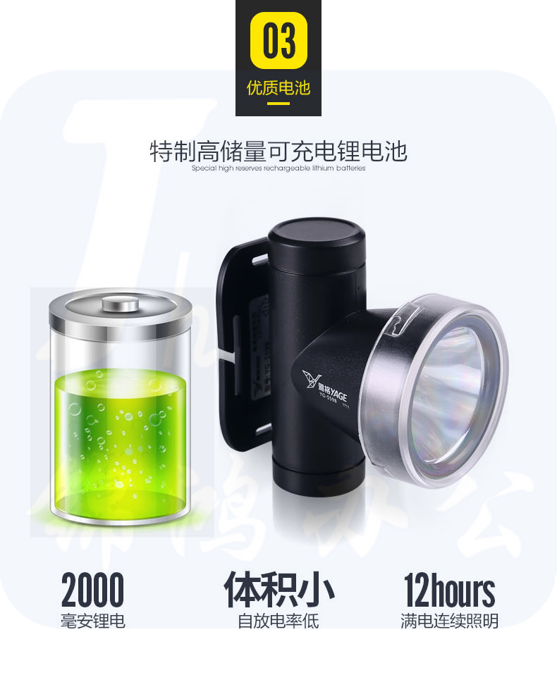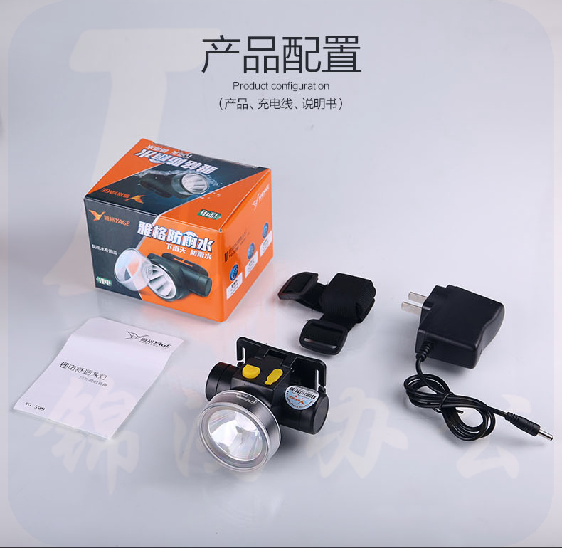 雅格 头灯5598锂电池强光充电超亮防水远射头戴式迷你便携夜探照灯