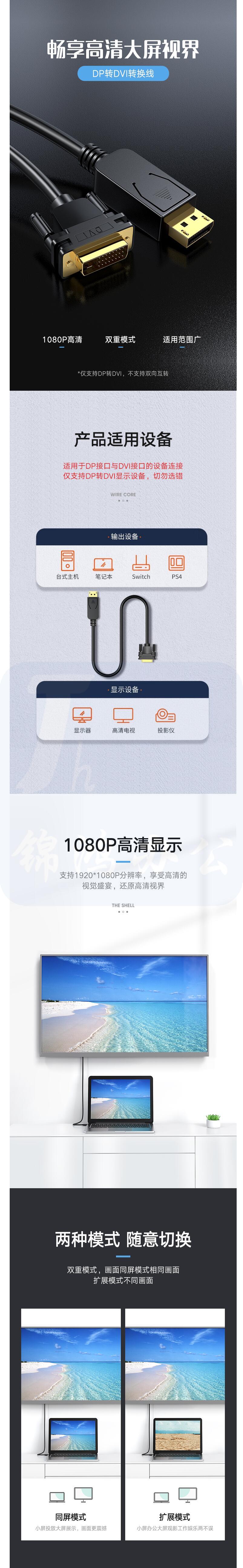 毕亚兹 DP转DVI转换线 3米 电脑接显示器投影仪连接线 HX12