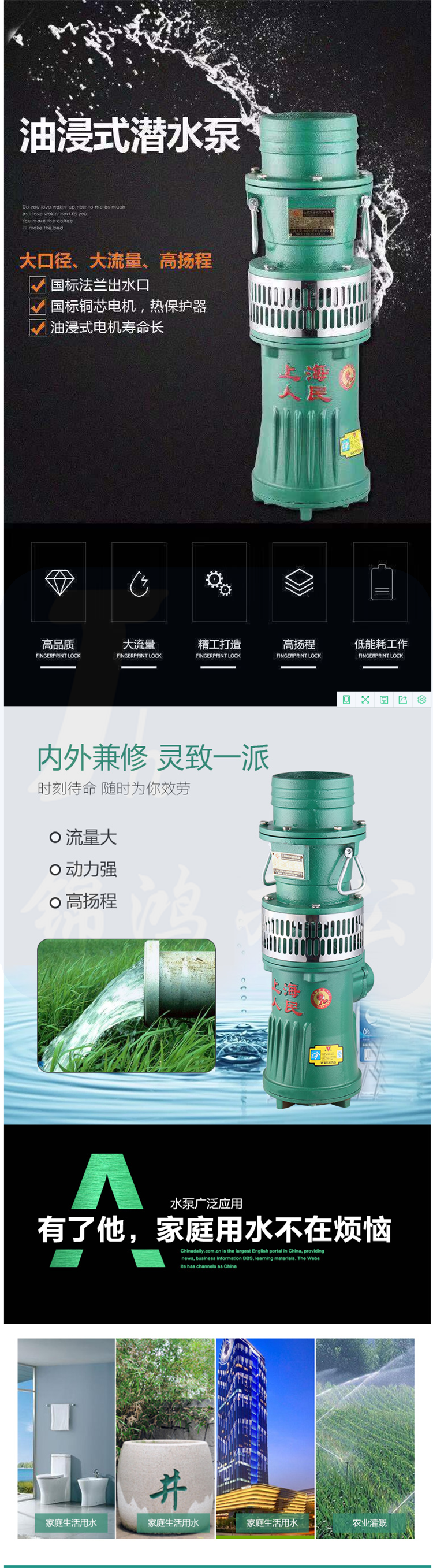 上海人民 QY25-26-3KW 2.5寸 380V 油浸污潜水泵