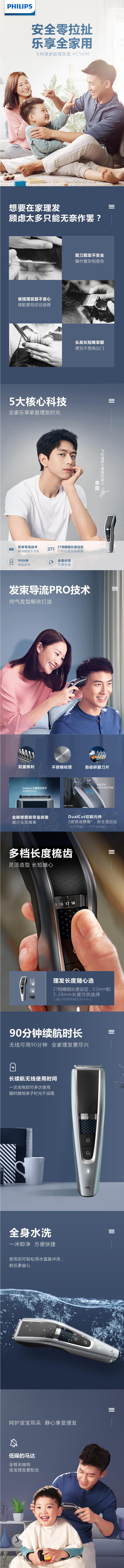 飞利浦( PHILIPS ) HC5690 电动理发器电推子家用27档可调