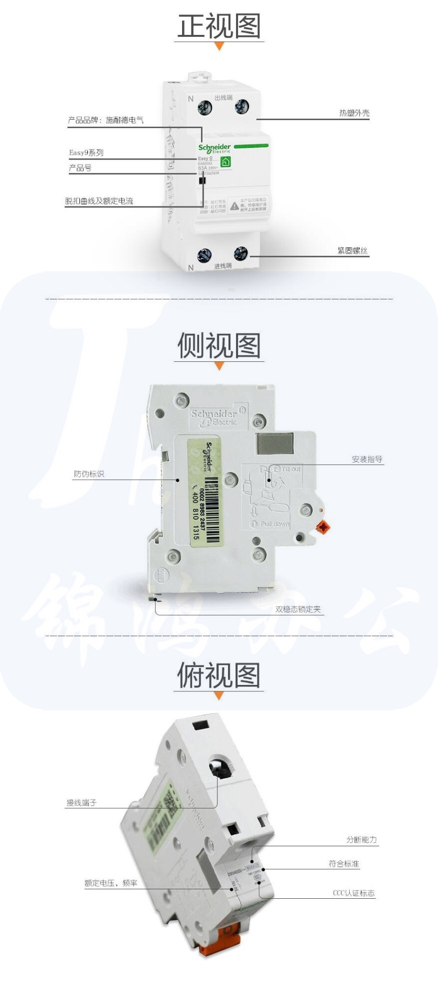 施耐德电气 空气开关 E9系列 自恢复过欠压保护器 2P过欠压保护 2P63A EA9ZGQ263R