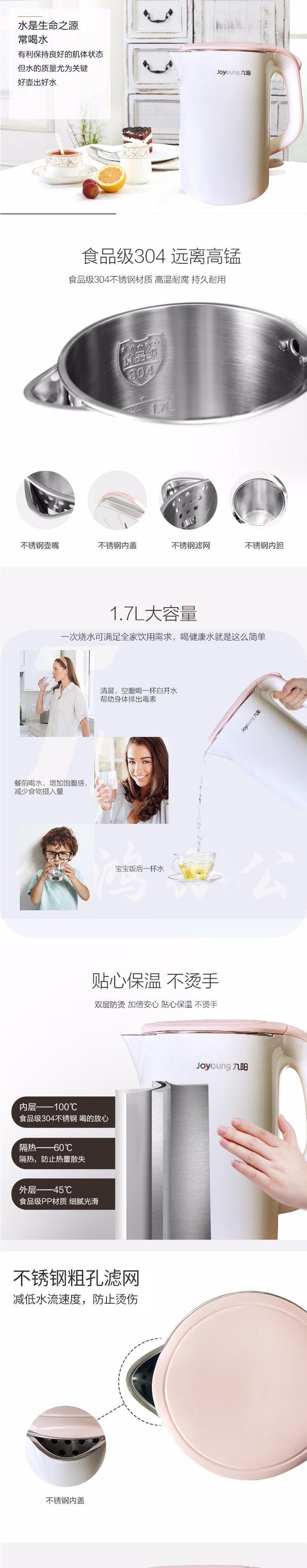 九阳 电热水壶304不锈钢 K17FD-W6750【1.7L 白色】