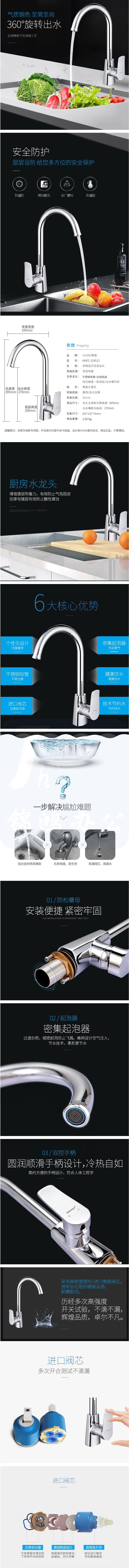 辉煌 厨房水槽龙头冷热单把双控360度可旋转