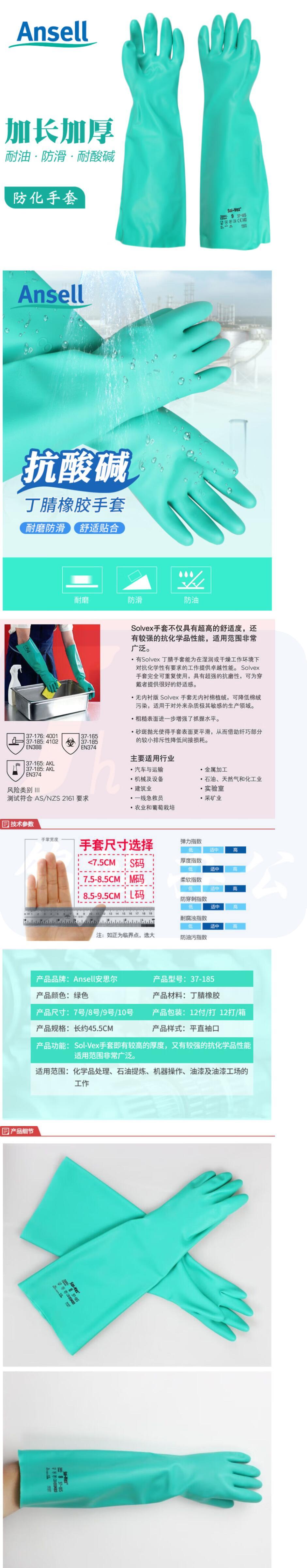 安思尔 37-185(45厘米)丁腈手套 耐酸碱防水防腐蚀手套