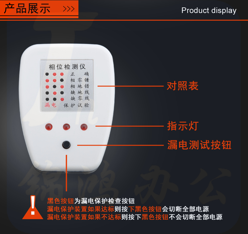 昆仑16A 验电器插座 验电插头 测电器电路线相位地线检测器