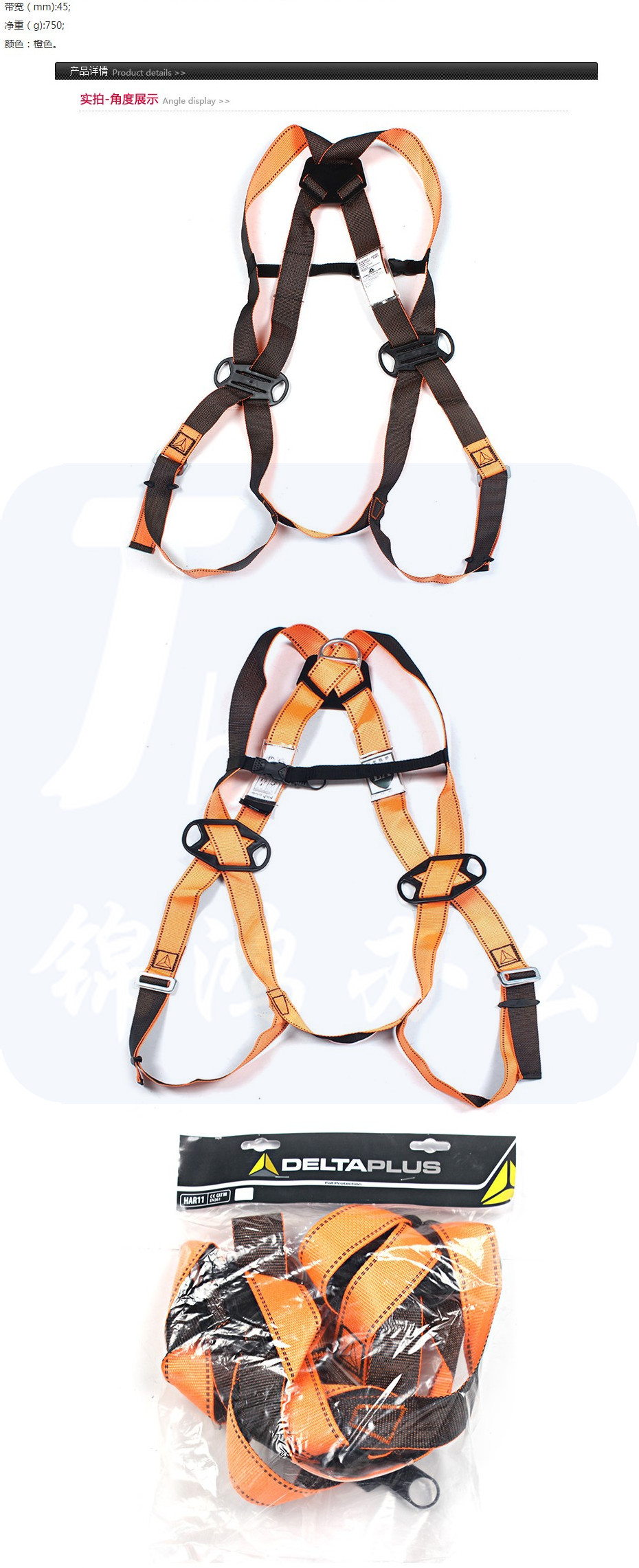 代尔塔 501013 双挂点胸扣安全带 HAR12MFB 橙色 =