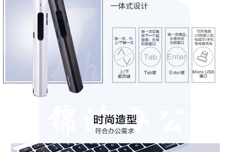 得力2801翻页笔激光笔PPT幻灯片遥控翻页笔 黑色